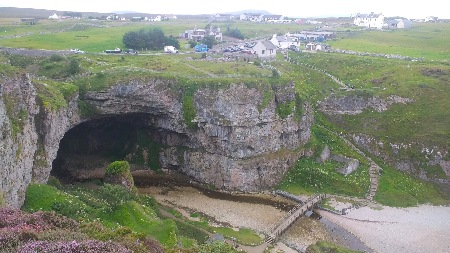 Das Madman's Window bei Glenarm ist eine auf natürliche Weise geschaffene fensterförmige Lücke in einem Kalksteinfelsen, durch das ein Verrückter der Sage nach jeden Tag auf die irische See blickte.
