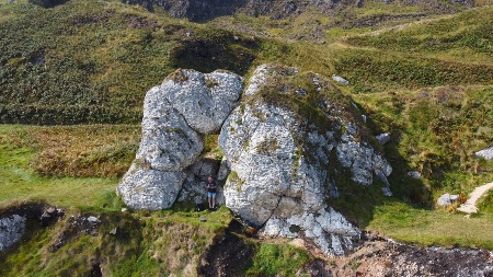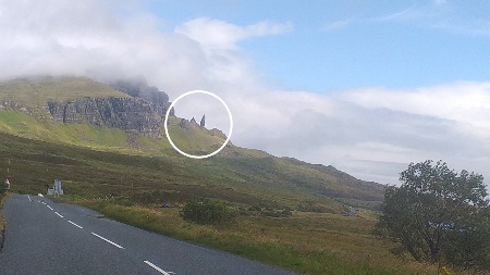 Nördlich von Portree steht nahe der Küstenstraße am Hang des 716 m hohen Berges The Storr die 48 m hohe Felsnadel Old Man of Storr.
