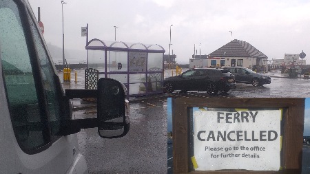 Bei der Abreise aus Schottland werden wir im Hafen von Cairnryan sehr gründlich kontrolliert, obwohl wir bei der Überfahrt nach Nordirland Großbritanien nicht verlassen.
