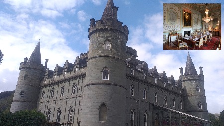 Erstes Ziel auf dem ca. 250 km „langen Umweg“ ist das 4-geschossige Inveraray Castle (1790), das Stammsitz der Dukes of Argyll ist.