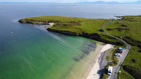 Auf der Halbinsel Carntullagh bei Killybegs stehen wir an einem langen Sandstrand.