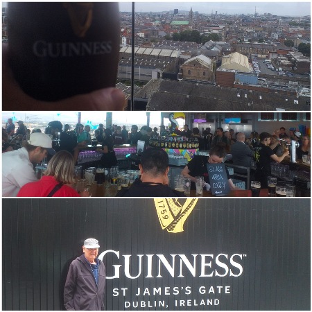 Natürlich gehört in Dublin ein Besuch der Guiness-Brauerei (seit 1759) dazu. In der im Dachgeschoss befindlichen Gravity Bar genießen wir bei dem im Eintrittspreis enthaltenen Glas Guiness den 360 Grad Rundblick über Dublin.