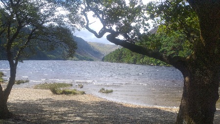 Etwas weiter südlich stehen wir im Wicklow-NP direkt an dem 2,8 km langen und 0,5km breiten Glendalough Upper Lake, einem Gletschersee in den Wicklow Mountains.