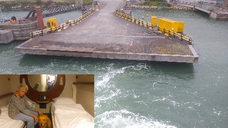 … wir am nächsten Nachmittag in einer hundefreundlichen Kabine die ca. 15-stündige Fährüberfahrt nach Roscoff antreten.
