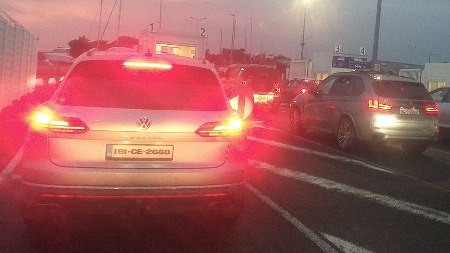 Da das EU-Parlament erst das europäische Festland als EU-Außengrenze akzeptiert und nicht die Republick Irland als EU-Staat betrachtet, müssen wir uns nach dem Herunterfahren von der Fähre am Morgen einer ca. einstündigen Einreisekontrolle in Roscoff/Frankreich unterziehen.