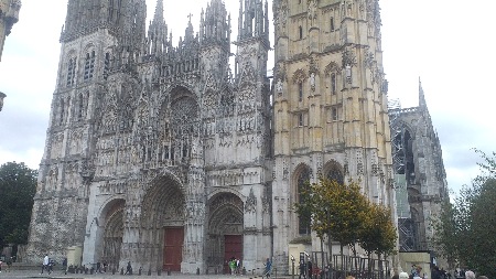 An der Kathedrale von Rouen (1237) an der Seine ca. 100 km nordwestlich von Paris werden zur Zeit die Folgen des im Juli 2024 in einem der Türme ausgebrochenen Feuers beseitigt.