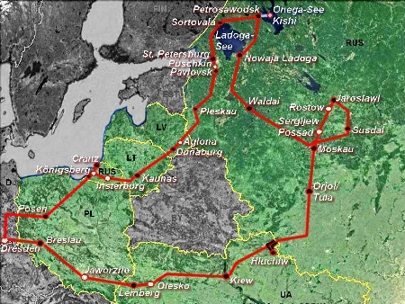 In Vorbereitung der Weltreise unternehmen wir eine Reise nach Russland, um die Gültig- & Richtigkeit unserer Dokumente zu prüfen, unsere Russischkenntnisse aufzufrischen und unser Verhalten in Gefahrensituationen (Krisengebiet an der Grenze zwischen der Ukraine und Russland) zu testen. So führt die Reise über Polen und die Ukraine nach Russland. Auf der Rückreise durchs Baltikum schauen wir uns auch die zu Russland gehörende Exklave Königsberg an, bevor es über Polen wieder nach Hause geht.