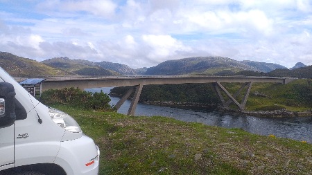 Da auch die geplante Fähre von Armadale (Insel Skye) nach Mallaigvaig (schottisches Festland) wegen der durch den Orkan verursachten Schäden nicht verkehrt, müssen wir mit einem Umweg von ca. 220 km wieder über die Skye-Bridge zurück zum schottischen Festland fahren.