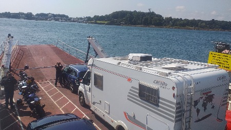 Da das EU-Parlament erst das europäische Festland als EU-Außengrenze akzeptiert und nicht die Republick Irland als EU-Staat betrachtet, müssen wir uns nach dem Herunterfahren von der Fähre am Morgen einer ca. einstündigen Einreisekontrolle in Roscoff/Frankreich unterziehen.