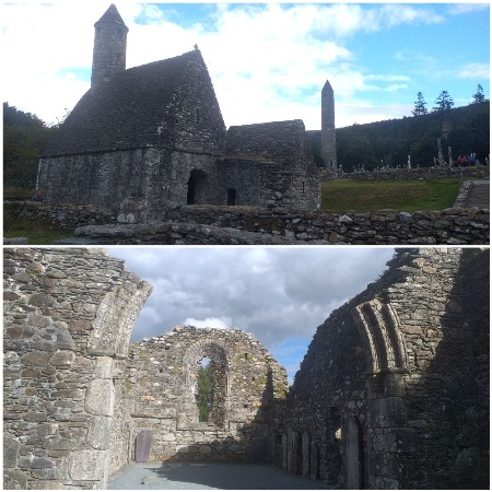 Am östlich gelegenen Lower Lake befinden sich die Ruinen der Glendalough Klostersiedlung mit einer Kapelle (11. Jh.), einem 33 m hohen Rundturm (1066) und der St. Peter & Paul Kathedrale (10. Jh./unten).