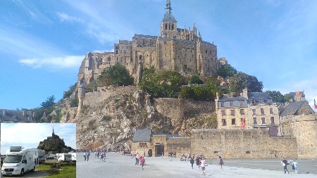 Beim Besuch von Le Mont-Saint-Michel im Sommer 2010 standen wir mit dem Wohnmobil noch direkt am Fuße des 92 m hohen Felsens mit der Abtei Mont-Saint-Michel, heute müssen alle Fahrzeuge ca. 3 km entfernt geparkt werden und die Insel kann entweder per Shuttle-Bus oder zu Fuß erreicht werden; Ziel der Beseitigung des Dammes und des Baus einer Stahlbrücke ist es, die Versandung der Bucht aufzuhalten und den Berg als Insel wieder herzustellen.