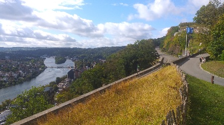 Von der Zitadelle (ab 5. Jh.) in Namur auf einem 190 m Bergsporn bietet sich ein guter Blick auf die Stadt Namur und die Maas.
