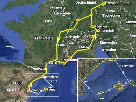Für 2026 haben wir eine Reise zu den Balearen von Februar bis April, d.h. während der Zeit der Mandelblüte, geplant. Die Anreise soll Anfang Februar aufgrund der möglichen winterlichen Straßenverhältnisse nicht über die Brennerautobahn, sondern über Frankreich erfolgen. Die Fähre von Barcelona nach Menorca, der östlichsten Insel der Balearen, wurde bereits für den 12.02.26 gebucht. Die Fähre von Ibiza, der westlichsten Insel, zurück nach Valencia ist noch nicht terminlich fixiert. Die Rückreise erfolgt entlang der Mittelmeerküste mit einigen Stopps, u.a. in Monaco, und über Südtirol nach Hause.